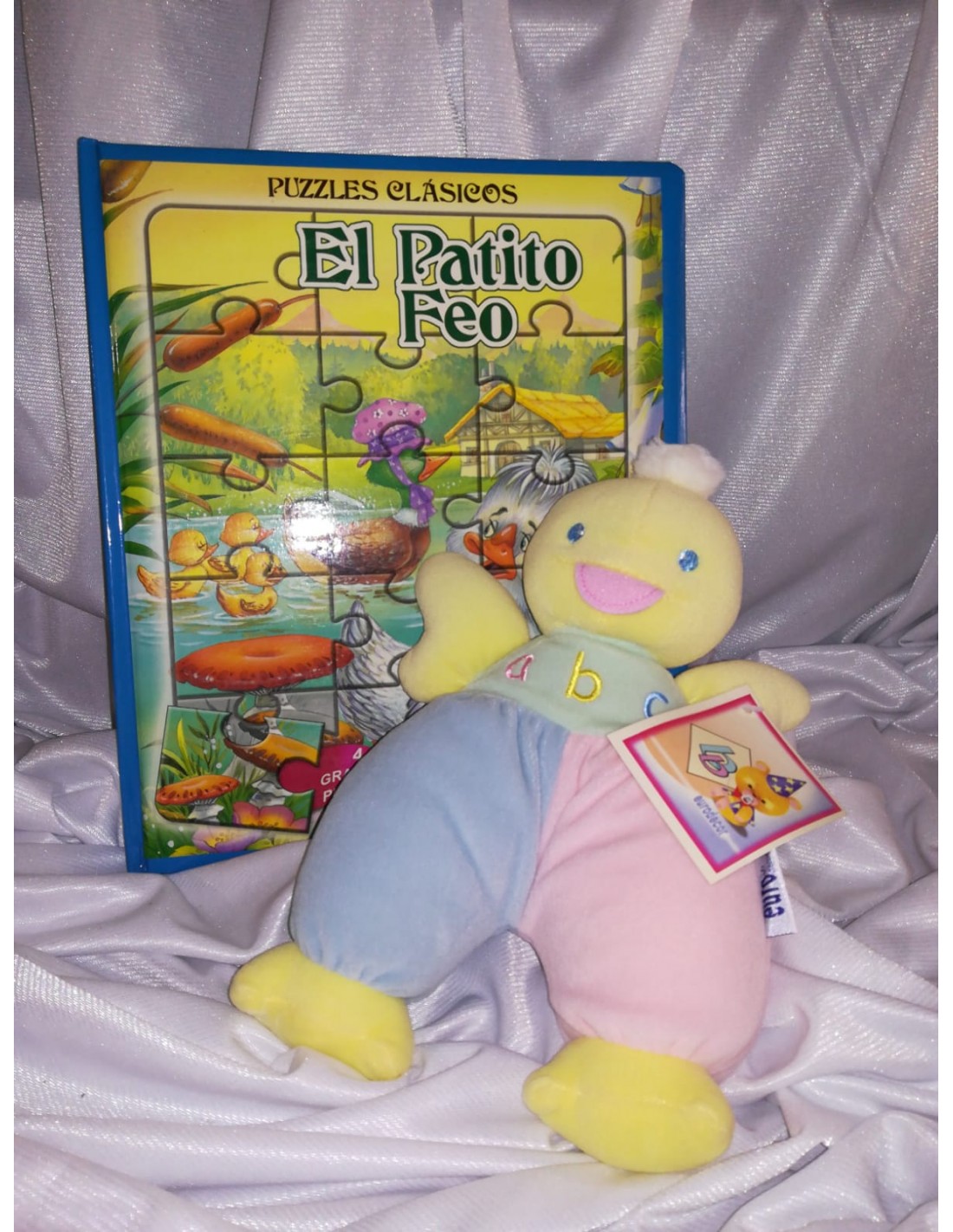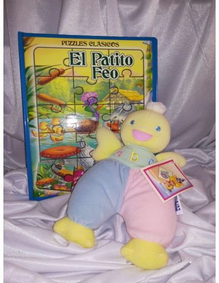 Un gran libro con un gran clásico. Parte de la colección PUZZLES CLÁSICOS, GRANDES PUZZLES, contiene 4 puzzles ilustrando la lectura, con piezas grandes y 15 piezas por puzzle, va acompañado de un patito de peluche, al que el pequeño podrá contarle la historia y explicarle lo guapo que es. Este Peque Regalo se envía listo para ser entregado, como en la foto, y está incluido en el precio.