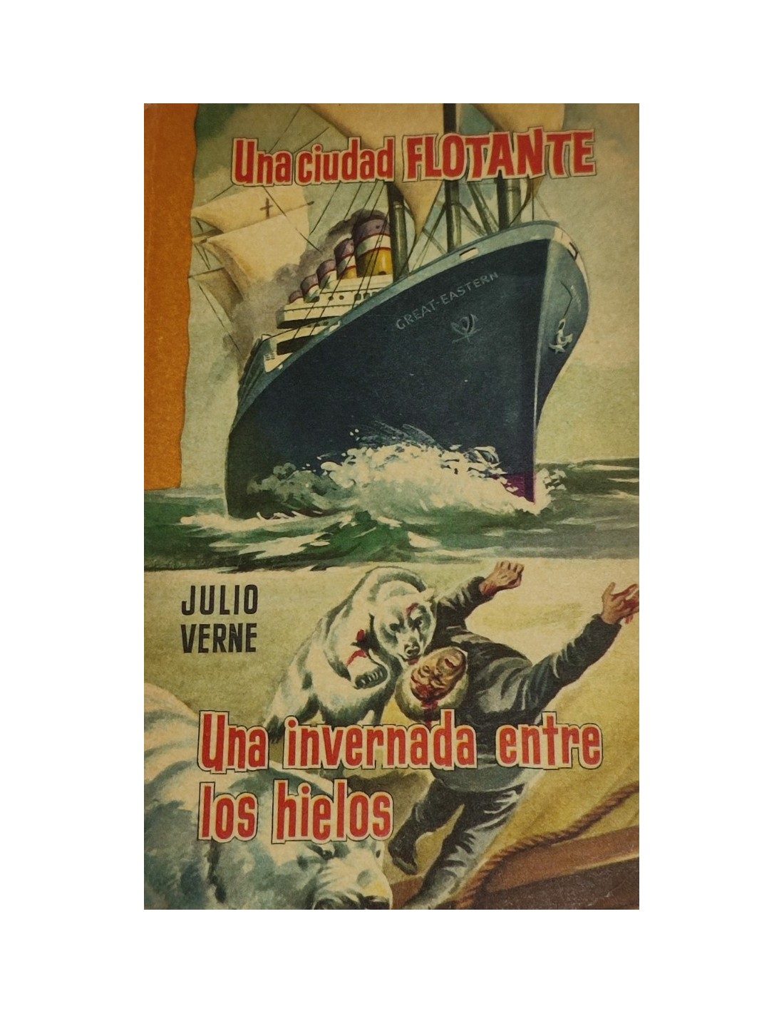 "Una ciudad flotante" y "Un invierno entre los hielos" son dos novelas de Julio Verne. La primera describe un viaje en transatlántico, mientras que la segunda narra la búsqueda del Polo Norte por parte de una expedición en un barco llamado "Avante".