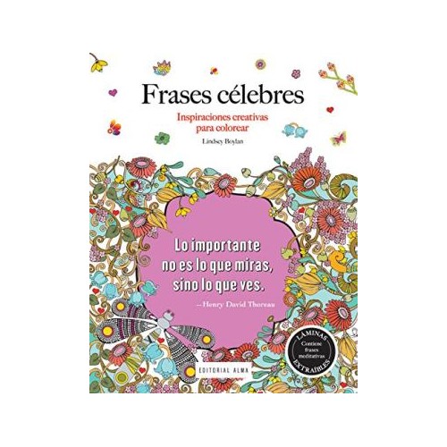 Contiene 30 láminas extraibles con dibújos diáfanos y abiertos. Impreso en papel de alta calidad. Cada lámina contiene dibujo en la página frontal y leyenda meditativa en la parte posterior. Esta obra reúne una colección de pensamientos inspiradores que te ayudarán a relajarte y encontrar la calma mientras coloreas preciosos dibujos de jardines, flores, animales o corazones. Las citas, seleccionadas cuidadosamente por su originalidad e ingenio, sin duda conseguirán estimular tu mente y contribuirán a aumentar tu confianza, motivación y optimismo. Entre sus autores destacan genios de la talla de Mark Twain, Aristóteles, Van Gogh, Lao-Tsé, Shakespeare, Buda, Confucio, Santa Teresa de Jesús o Chavela Vargas. La reconocida ilustradora Lindsey Boylan es especialista en libros de colorear para adultos, y el enorme éxito de sus obras la convierte en una de las autoras internacionales más destacadas