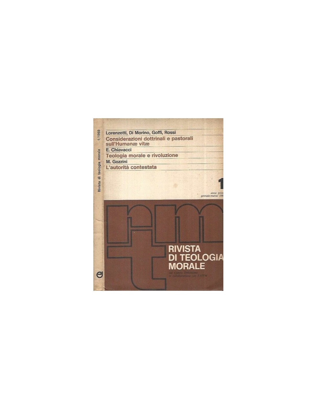 Rivista di teologia morale, anno I, gennaio marzo 1969