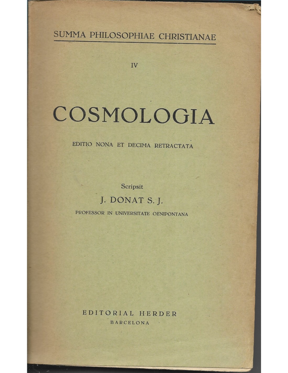 Summa philosophiae Christianae IV COSMOLOGIA